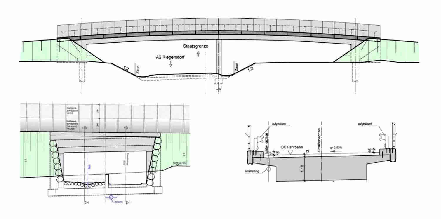| Neubau mit Tiefgarage | 44 Haupt- und Nebenwegbrücken sowie Furte | Prüfstatik | |